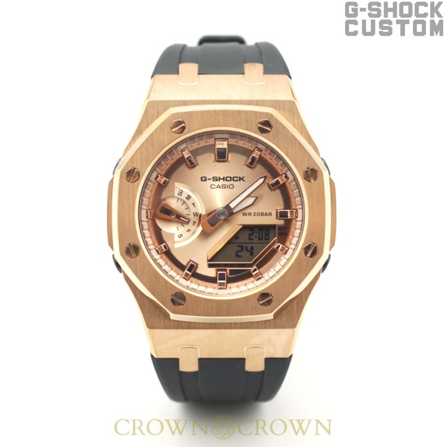 ■商品番号 gma-s2100-005 ■G-SHOCK本体モデル GMA-S2100MD-1A ■カスタムパーツ ベゼル、ベルト ■仕様 ピンクゴールドメッキ ■素材 ステインレス ■納期 ご注文から約10営業日以内発送いたします。 ■1年保証について 自然に取れた石取れ、生活防水以外の水もれによる時計故障を除く、時計の自然故障。 ※注意※カスタムをすることにより、G-SHOCKの防水機能の保証は無効になります。 生活防水は大丈夫ですが、入浴や海水浴などでは故障の原因になります。 【MADE IN JAPAN】
