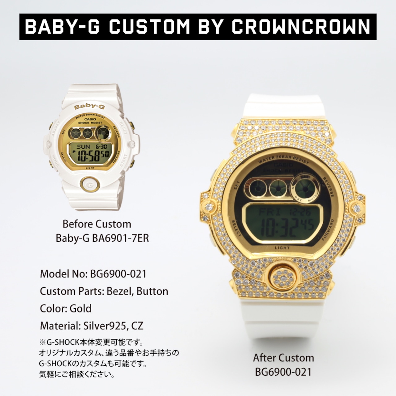 ※注意※カスタムをすることにより、G-SHOCKの防水機能の保証は無効になります。